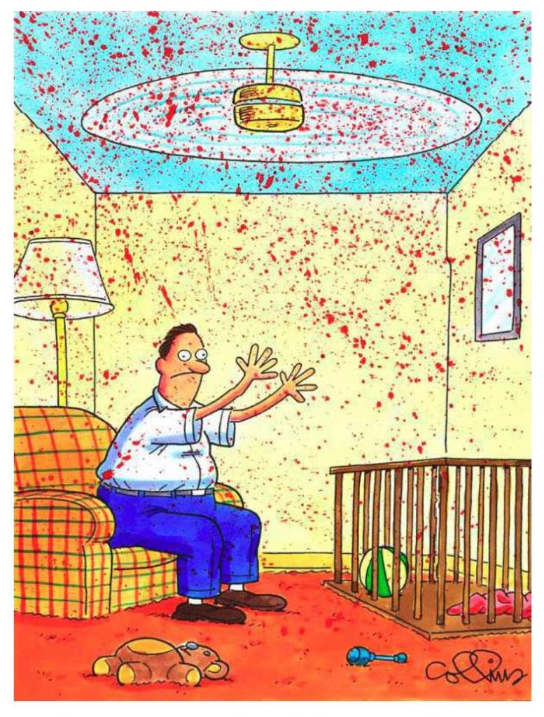 Me sorprendió encontrar varias caricaturas, vistas en las redes, que por años me han gustado como el hombre que tira el bebé al aire, olvidando el abanico de techo). Ya conozco al responsable.