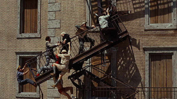 Esto debe explicar parte de mi fascinación con el filme, pues siendo un niño, esto era el humor que podía entender con facilidad. “It’s a Mad, Mad, Mad, Mad World” tiene peleas físicas (una tan grande, que termina con la destrucción completa de una gasolinera), un avión que aterriza contra un restaurante, estantes de pinturas derrumbados, carros volcados (incluyendo uno arrastrado por el río), un incendio en una ferretería, y un gran desastre final envolviendo una escalera de bomberos, que debe ser unos de los grandes desenlaces cómicos en la historia del cine, si es que le gusta el “slapstick”.