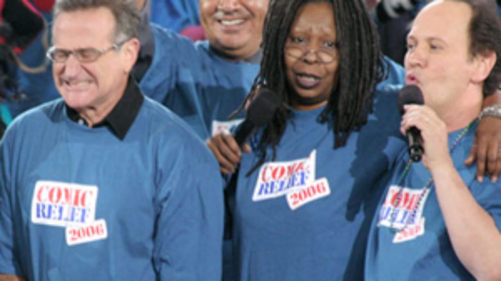 En resumen: “Comic Relief” es una actividad de recaudación de fondos para personas sin hogar. Se trata de un telemaratón de comediantes compartiendo sus rutinas de “stand-up”. Por varios años, los actores Robin Williams, Whoopi Goldberg y Billy Crystal fueron los anfitriones de este evento.