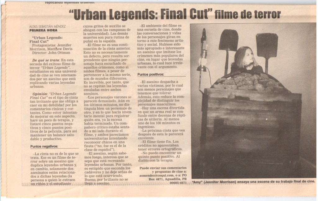 Me escribió a mi sección de “Preguntas y respuestas”, donde contestaba preguntas relacionadas al cine.