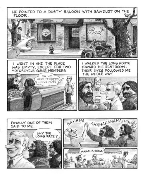 El contenido: El libro luce extenso, pero se lee en poco tiempo (además de la brevedad del formato, hay muchas páginas en blanco). La primera mitad son historietas con unas tres páginas de duración (en promedio), en que comparte anécdotas relacionadas a varias de sus películas (se percibe un afecto especial por “Three Amigos”, “Planes, Train & Automobiles” y “Roxeanne”), y a sus encuentros con distintos artistas (entre sus orgullos: Paul McCartney interpretó una canción que compuso).