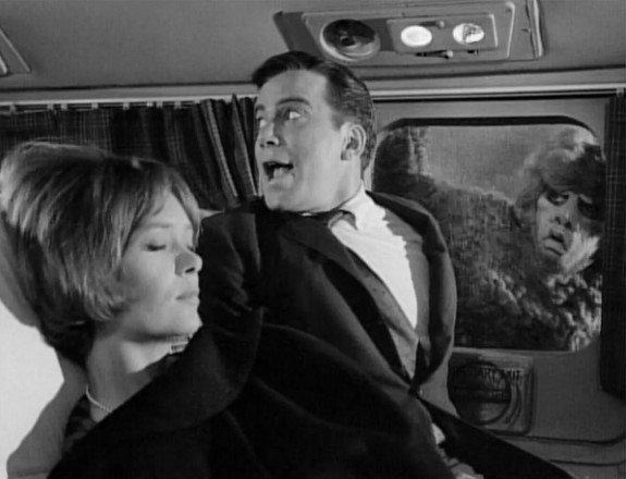 Un clásico de “The Twilight Zone”. Un pasajero en un avión advierte que hay una criatura en el ala de la nave, lo cual todos toman, por supuesto, como una locura.