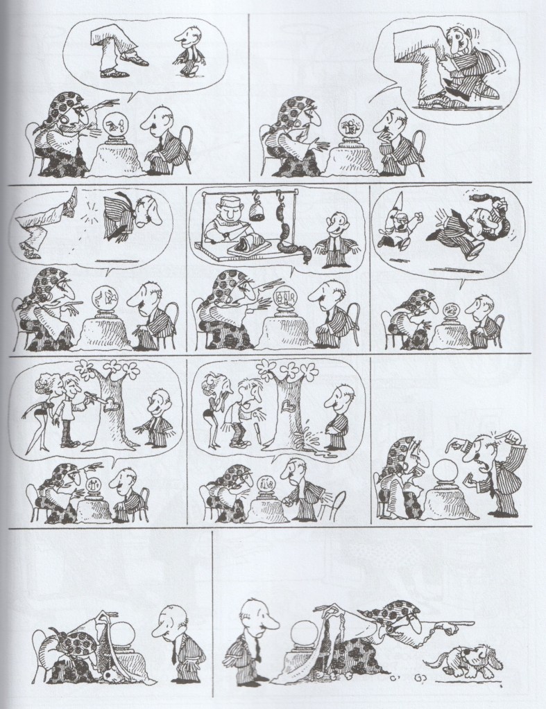 El contenido: El libro incluye tirillas que visitan temas que el autor gusta explorar: la frialdad de las clases altas ante las necesidades de los pobres; las mentiras de los políticos; la ansiedad ante el avance de la edad; las mujeres aburridas de su rutina casera, y mucho más.
