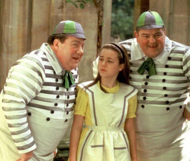 El libro se distingue del primero en muchas formas. Este libro tiene muchas poesías (a veces escritas a modo de canción), y personajes que no son originales de Carroll, sino de canciones de cuna (“nursery rhymes”) de Inglaterra en el siglo XIX. De ahí vienen Tweedledum y Tweedledee, Humpty Dumpty, así como el León y el Unicornio que pelean. Debe haber sido muy entretenido en su estreno, pero la gracia de la referencia queda distante en tiempo y cultura. Para comprenderlo, conviene conocer estas canciones infantiles.
